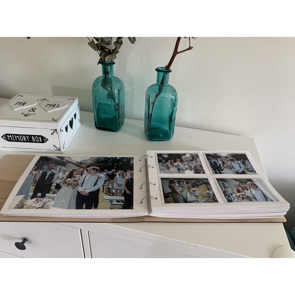 Výsledný počet fotografií závisí na zvoleném formátu fotografií. Pro vizuálně zajímavý a dynamický vzhled doporučujeme kombinovat různé formáty. Album je vhodné i pro instax fotky, fotky různých tvarů, retro fotky malých formátů aj.