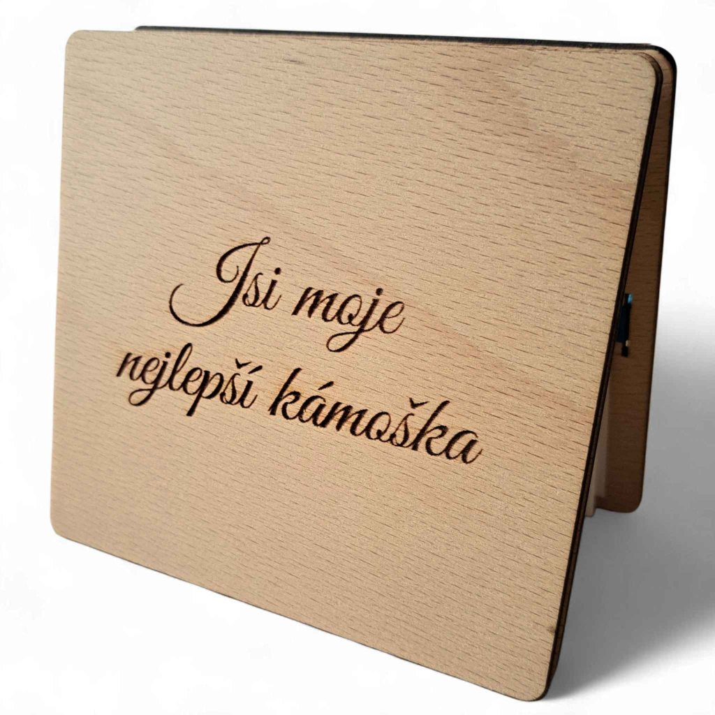Protože opravdové přátelství je k nezaplacení. Každý má v životě někoho, kdo je víc než jen kamarádka. Je to ta, která vás rozesměje i v těžkých chvílích, vyslechne, když potřebujete, a se kterou se smějete do noci a vedete hodinové telefonáty. Přesně pro takovou osobu vzniklo naše dřevěné mini leporelo s nápisem „Jsi moje nejlepší kámoška“