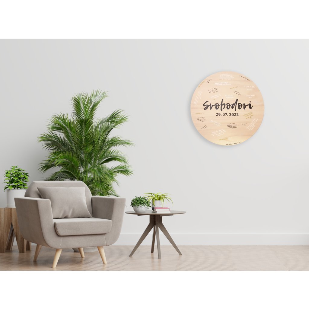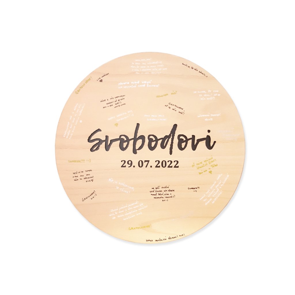Ve Vašem domově pak bude podpisová deska se vzkazy tvořit milou každodenní vzpomínku nejen na Váš velký den, ale i na každého, kdo byl u toho.
